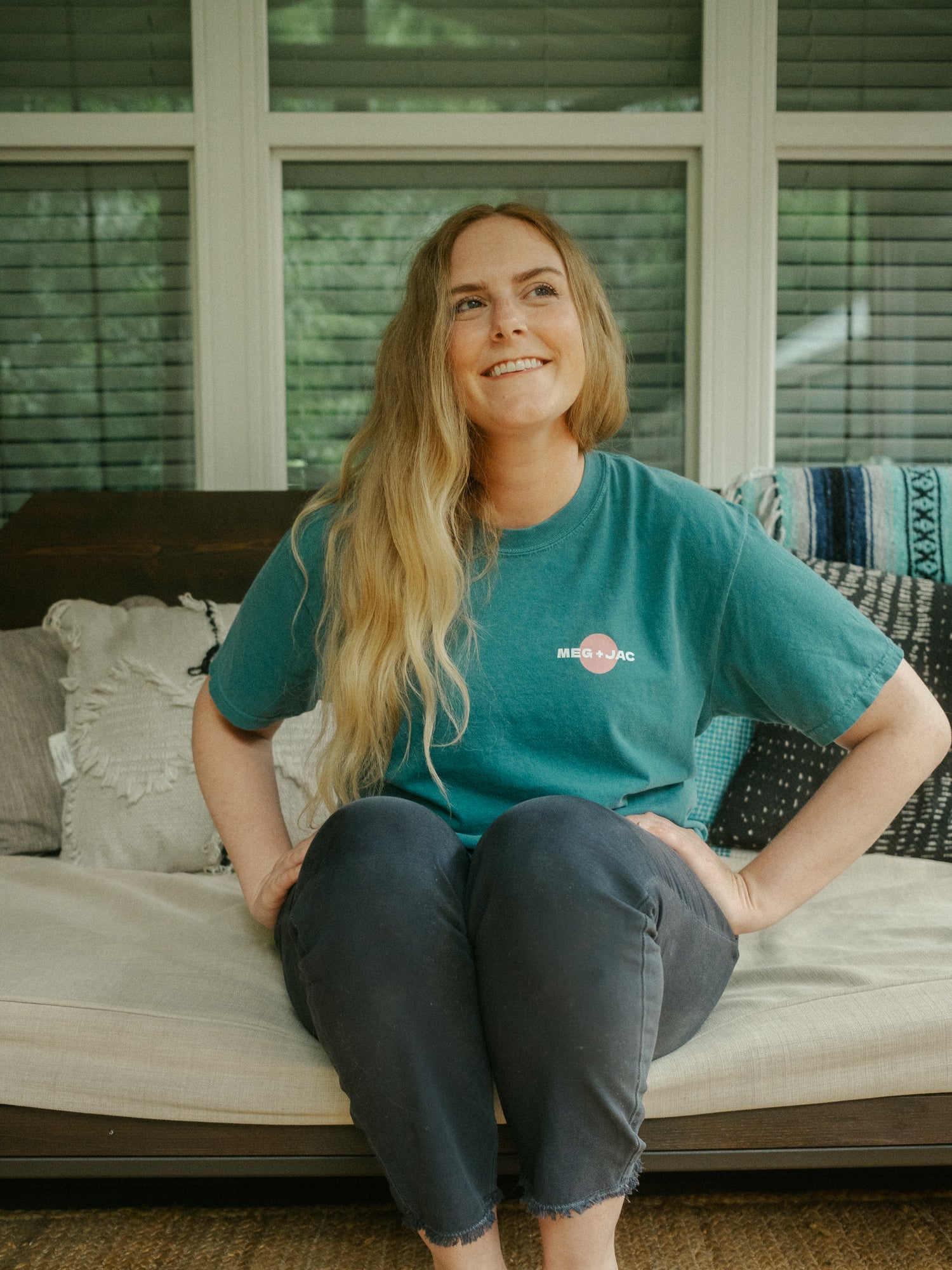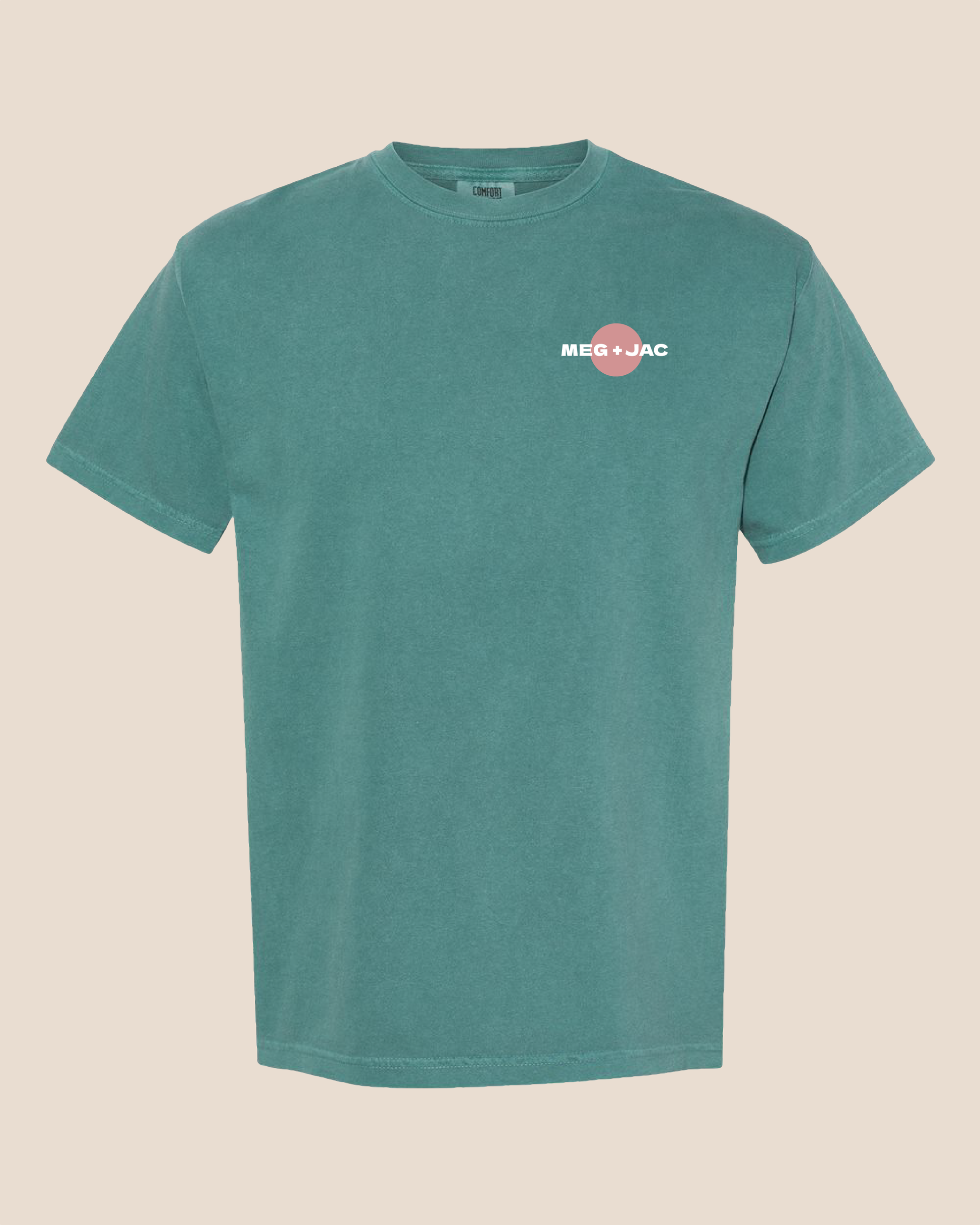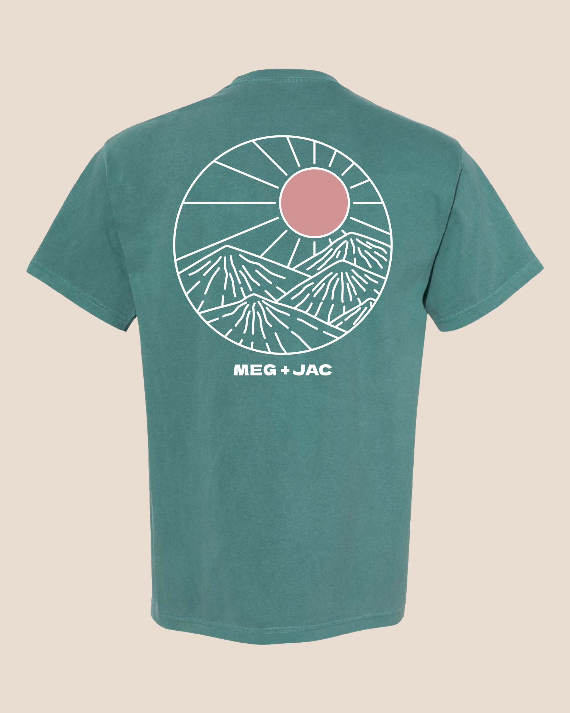 - Screen-printed MEG + JAC on the front with mountain logo on the back